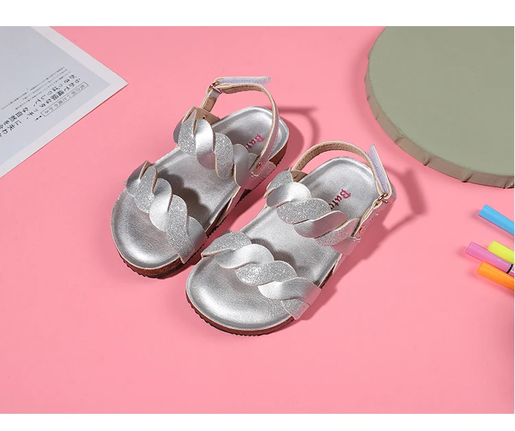 High Quality Girls' Summer Beach Sandals Shimmer Fabric Toddler Cork Jelly Flat Children's Back Strap Design for Kids